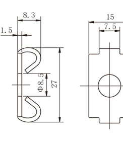 | 30系列鋁型材彈性扣件適用于30系列槽8規格鋁型材之間直角連接,將其插入一端型材槽內,搭配相應規格螺栓配套使用,彈性扣件主要適用于震動環境下應用框架的組裝連接,可以有效地防止松動; |